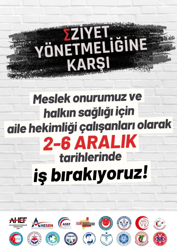 Eziyet Yönetmeliğine Karşı Meslek Onurumuz ve Halkın Sağlığı İçin Aile Hekimliği Çalışanları Olarak 2-6 Aralık Tarihlerinde İş Bırakıyoruz!