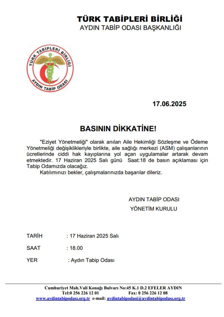 Bu amaçla, 17 Haziran 2025Salı günü Saat:18.00 de basın açıklaması için Tabip Odamızda olacağız.