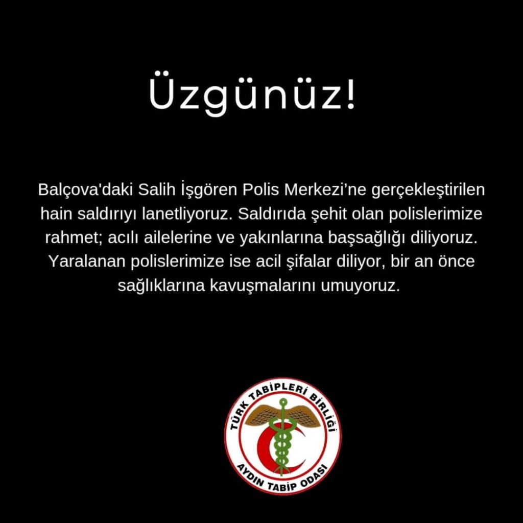 İzmir’in Balçova ilçesindeki Salih İşgören Polis Merkezi’ne yönelik gerçekleştirilen hain saldırıyı kınıyor, olayda şehit düşen polislerimize rahmet; ailelerine ve milletimize başsağlığı, yaralı polislerimize acil şifalar diliyoruz.