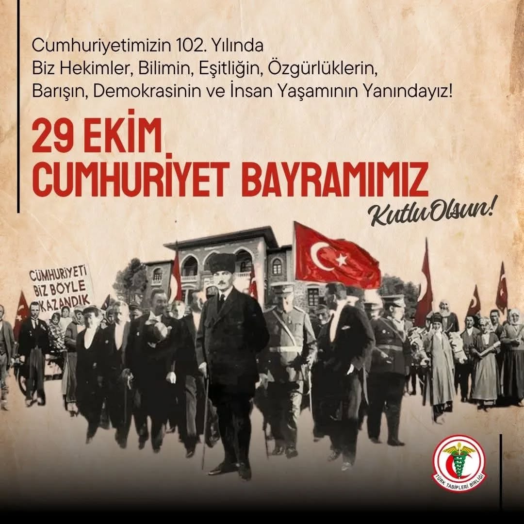Cumhuriyetimizin 102. Yılında Biz Hekimler, Bilimin, Eşitliğin, Özgürlüklerin, Barışın, Demokrasinin ve İnsan Yaşamının Yanındayız
